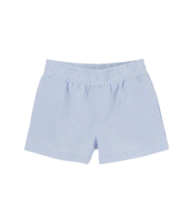 Classic Sheffield Shorts in Beaufort Bonnet's signature Breakers Blue Seersucker bring timeless preppy style to your little one's warm-weather wardrobe. These boys' shorts feature a tailored fit with adjustable waist for all-day comfort. Perfect for beach days, birthday parties, or Sunday brunch.