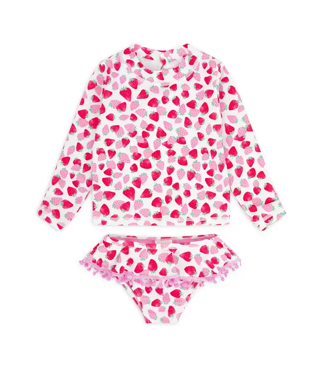 Features floral chest print and flirty ruffle skirt with pom-poms on the bottoms for extra fun in the sun. Read more.